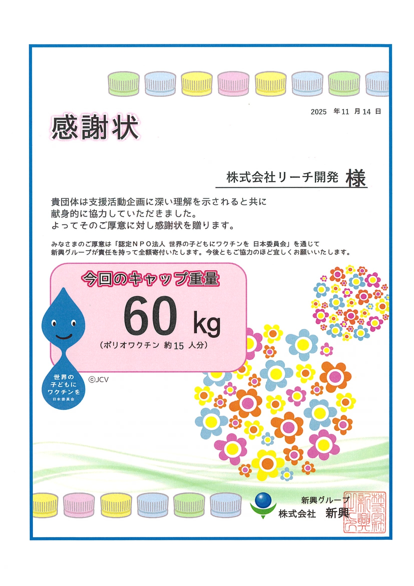 平成27年4月以降 認定NPO法人 世界の子どもにワクチンを 日本委員会 に寄贈致しました)
